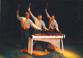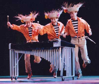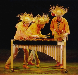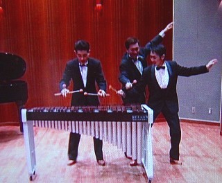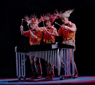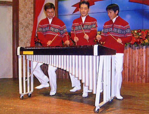 ↑ラテンメドレーでは、体力の限界に挑戦!マリンバを2回転も決行!